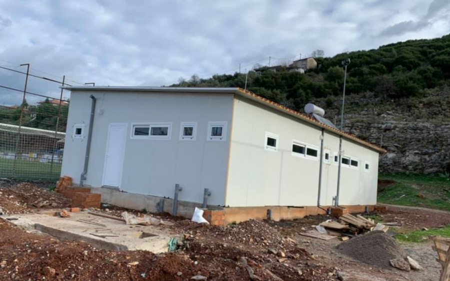Το κτίριο κατασκευάστηκε με την μέθοδο της προκατασκευής και έχει εξωτερικές διαστάσεις 14,50×8,00μ. ,περιλαμβάνει δύο χώρους αποδυτηρίων για αθλητές, αποδυτήριο διαιτητών, αποδυτήριο ΑμεΑ, ιατρείο και αποθήκη.