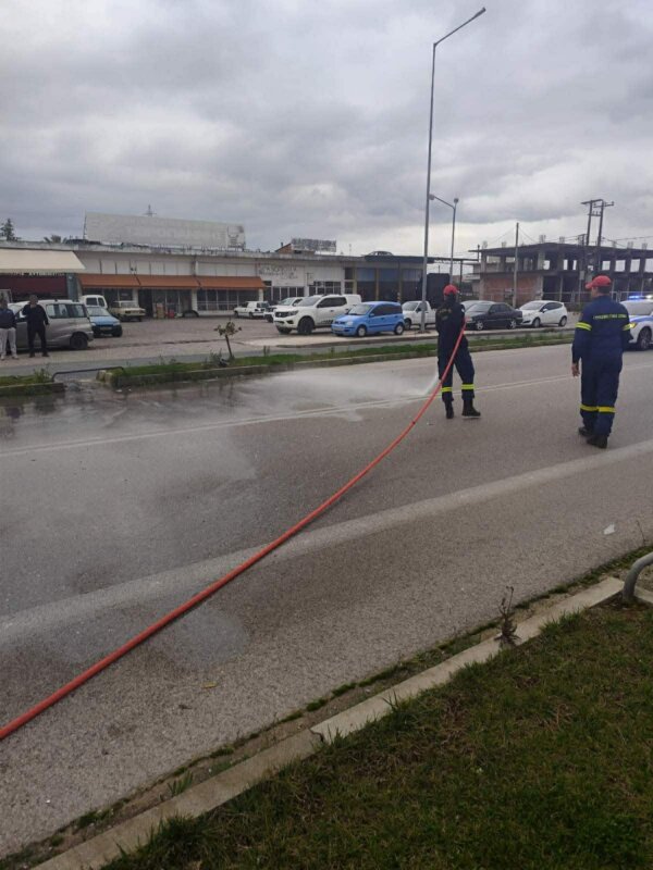 Στο σημείο έσπευσε η Πυροσβεστική Υπηρεσία, προχωρώντας σε πλύση του οδοστρώματος για λόγους ασφαλείας, καθώς στο σημείο υπήρχαν σπασμένα πλαστικά κομμάτια και γυαλιά.