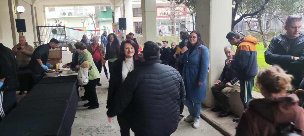 Το άρωμα από τα σουβλάκια και τα λουκάνικα συνδυάστηκε με το γέλιο και τους χορούς, δημιουργώντας μια ζωντανή, αποκριάτικη ατμόσφαιρα που δεν πτόησε ούτε η βροχή.
