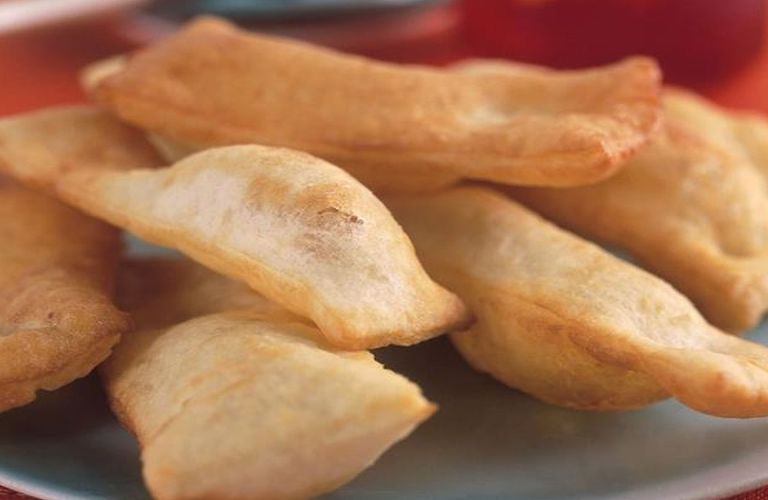 - Τοποθετείτε σε κάθε κομμάτι φύλλου από ένα γεμάτο κουταλάκι του γλυκού γέμιση και το διπλώνετε σε σχήμα ορθογωνίου. Πιέζετε με πιρούνι τις άκρες έτσι ώστε να γίνουν επίπεδες.