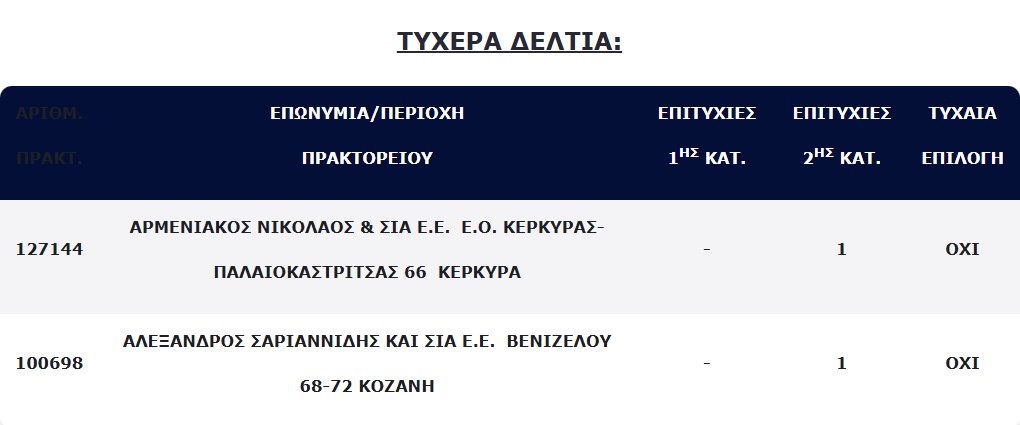 Επίσης, δύο (2) τυχερά δελτία βρέθηκαν στη 2η κατηγορία (5), τα οποία κερδίζουν το ποσό των €100.000,00 για κάθε επιτυχία.