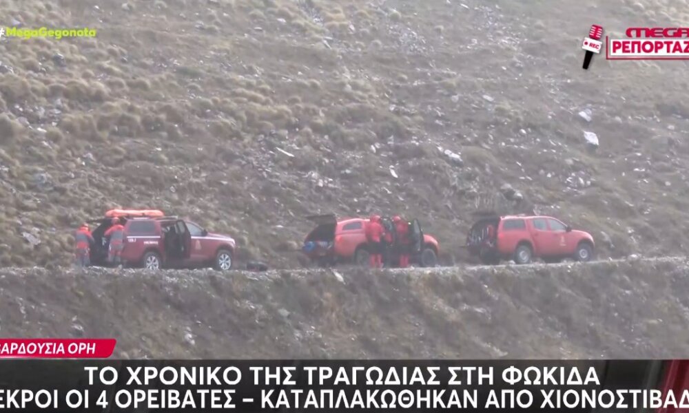 Στα Βαρδούσια Όρη η αναζήτηση είχε τραγική κατάληξη αφού και οι 4 ορειβάτες που αγνοούνταν εντοπίστηκαν νεκροί, πιο συγκεκριμένα καταπλακώθηκαν από χιονοστιβάδα.