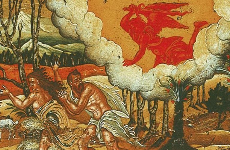 Ο Αδάμ και η Εύα τότε κάθισαν απέναντι από τον κήπο της τρυφής και θρηνούσαν για το κακό που τους βρήκε.