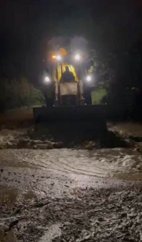 Μηχανήματα έργου έφτασαν στο σημείο για την απομάκρυνση των υλικών και την αποκατάσταση της ροής του νερού, προκειμένου να αποφευχθούν περαιτέρω ζημιές.